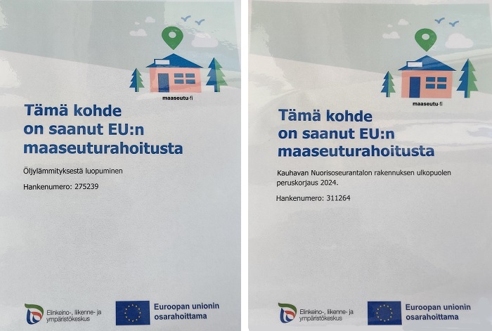 Kesken oleva hanke on edistynyt suunnitelmien mukaisesti, tämän hankkeen nimi on; Ulkopuolen peruskorjaus 2024. Vesikate on vaihdettu, ikkunat uusittu ja ulkoseinälaudoitukset uusittu. Perustus uudelle LED-taululle on tehty, sekä sen teräsrunko on pystytetty. Olemme myös aloittaneet sisätilojen pintarakenteiden uusimisen tanssisalissa ja kahviossa. Tämä hanke on saanut ELY-keskuksen myöntämää EU:n maaseuturahoitusta. Hanke on myös EU:n osarahoittama. |